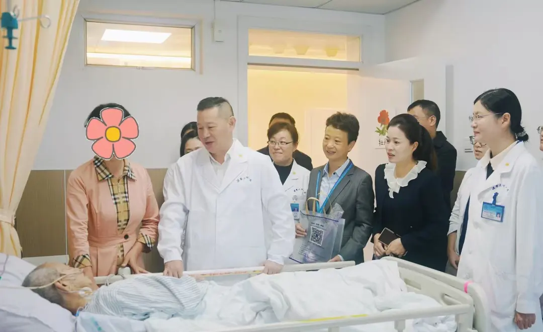 “祝您早日康复,健康长寿!” 10月29日上午, 温医大附一院院长张纯武等一行,专程来到温医大附一院公园路院区老年医学科看望在院患者,代表医院送上重阳节的关怀,并与各位长者亲切交谈,悉心了解他们的治疗康复与日常生活情况。一句句暖心话语,让节日的病房更显温馨。一位家属动情地表示,家中长者因病情复杂,在院期间多次面临危急情况,都在老年医学科医护人员精湛的医术与不懈努力下转危为安。她感慨地说道:“住在这里,我们感到非常安心、放心。”这简短而真挚的话语,不仅是对科室医护团队的高度认可,更是对医院服务理念的最好诠释。