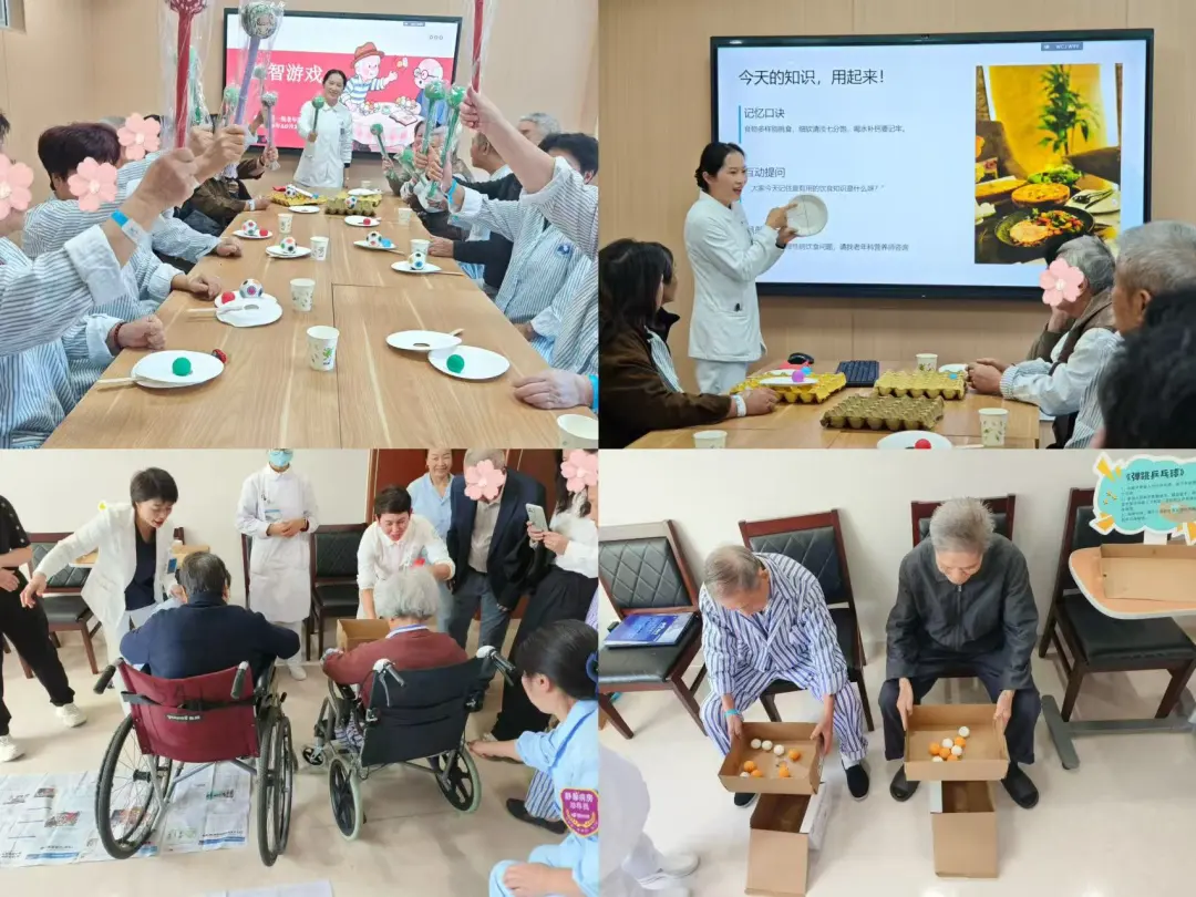 在团体活动环节,两院区各具特色。公园路院区开展形状配对、数字排序等益智活动,医护人员耐心引导,在轻松互动中锻炼长者认知能力;南白象院区则组织叠杯子、趣味保龄球等康复游园活动,护理团队全程陪伴,根据每位长者的身体状况个性化调整活动难度,让长者在安全愉悦的氛围中提升协调与平衡能力。活动现场,医护人员时刻关注长者情绪变化,及时给予鼓励与肯定,让许多原本拘谨的长者逐渐展开笑颜,积极参与其中。
