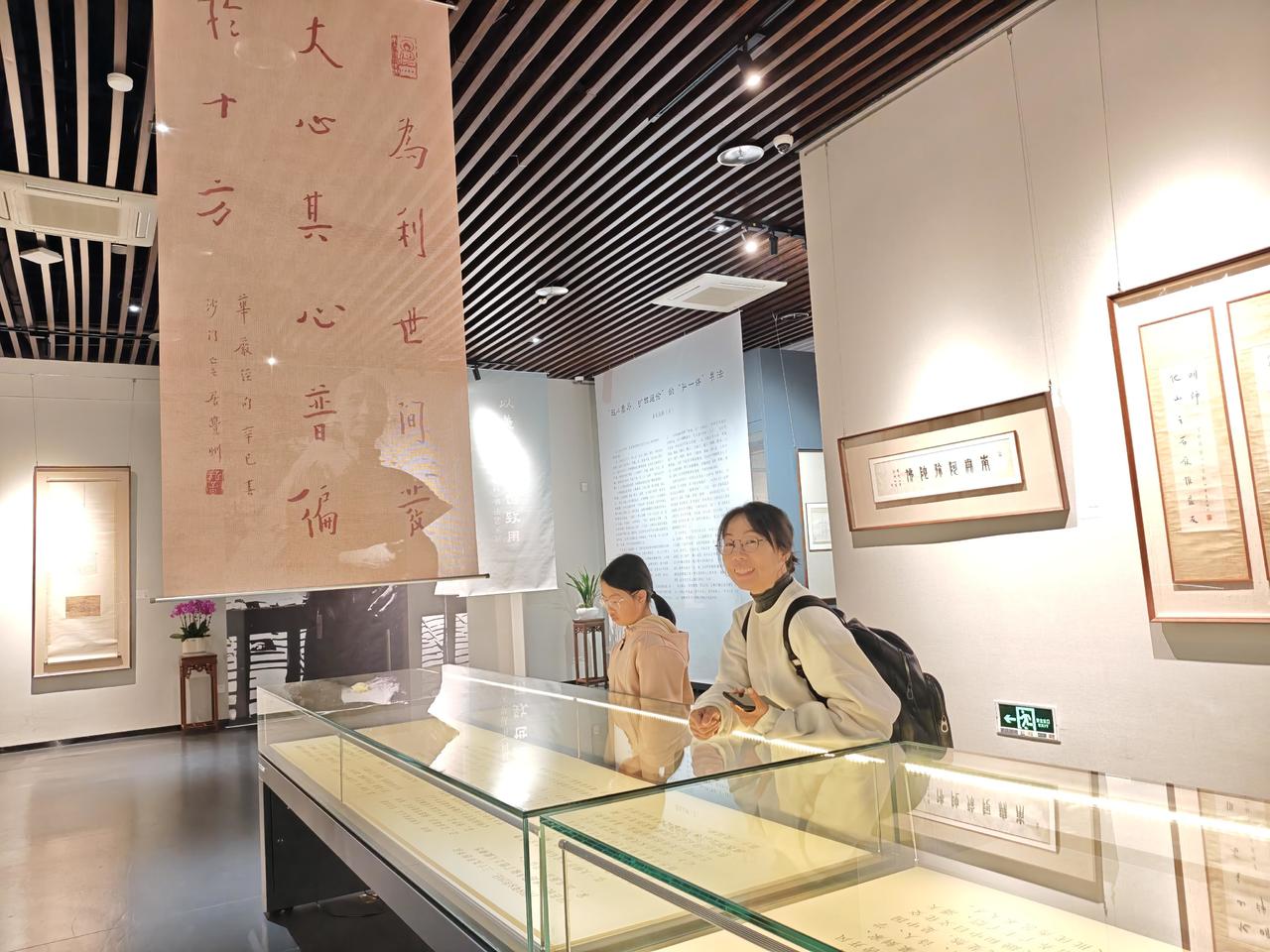 “长亭外,古道边,芳草碧连天……”展厅里循环播放着《送别》的熟悉旋律,一下子拉近了走进展厅的参观者与弘一大师(李叔同)的距离,开启一段跨越世纪的翰墨因缘。