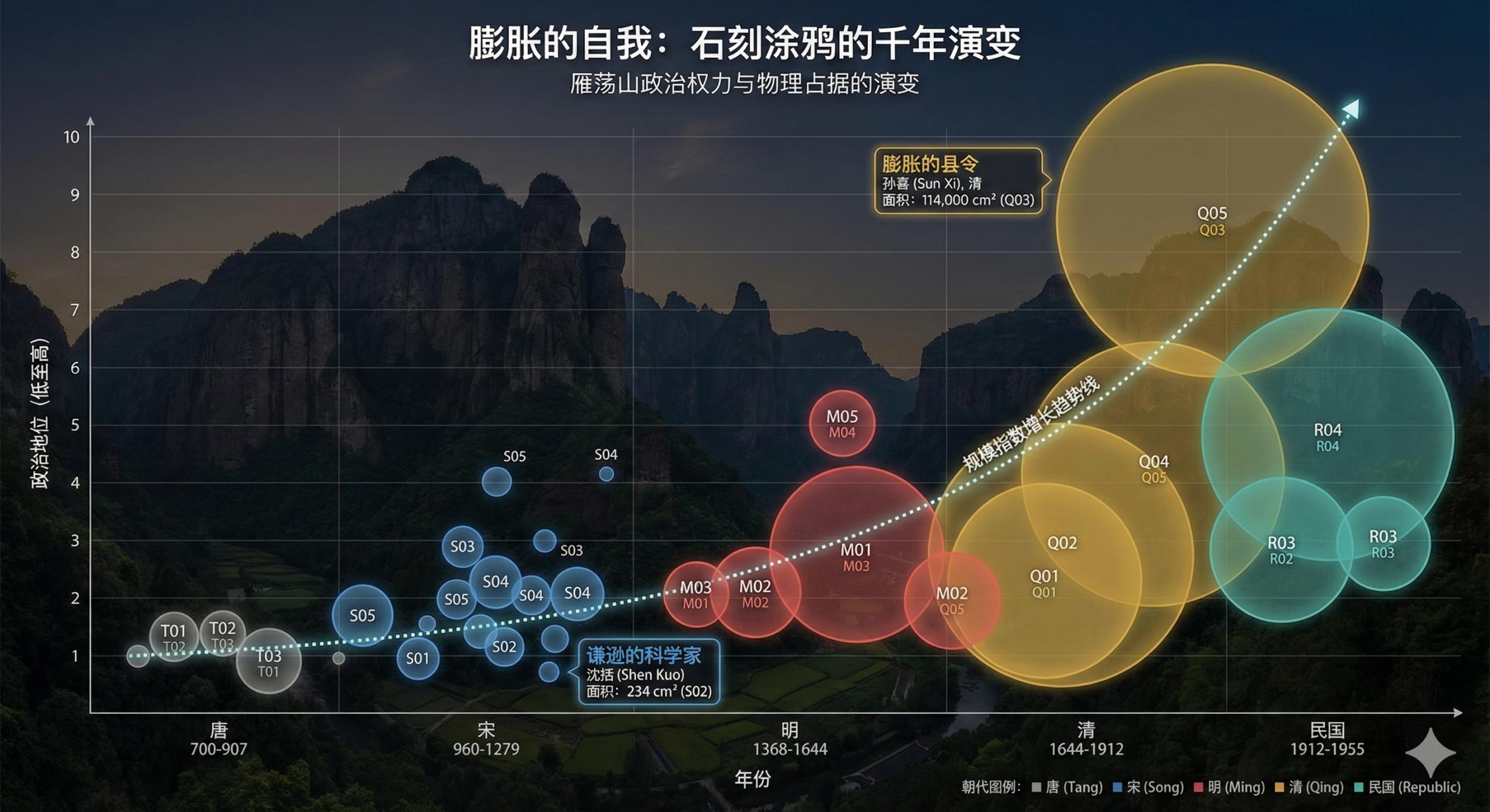 石壁上的权力与物理占据演变 数据来源《浙江通志•雁荡山专志》@Nono Banana制图