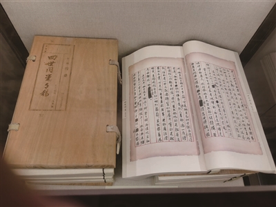 玻璃橱窗内展出了老舍《四世同堂》的手稿,他的字非常端正别致,你看,这是《四世同堂》第一部第一章的开头:祁老太爷什么也不怕,只怕庆不了八十大寿。在他的壮年,他亲眼看见八国联军怎么攻进北京城……