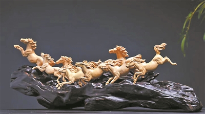 同样致力于让传统“活”起来的,还有叶柱。他的黄杨木雕以静态精雕见长,但今年,他推出了一款创新的太阳能木雕唐马汽车摆件。“我力求突破,为作品注入实用功能,让木雕‘活’起来,真正融入日常家居生活。”这种让非遗从陈列柜走向汽车中控台、书房案头的尝试,拓宽了传统技艺的存在场景。