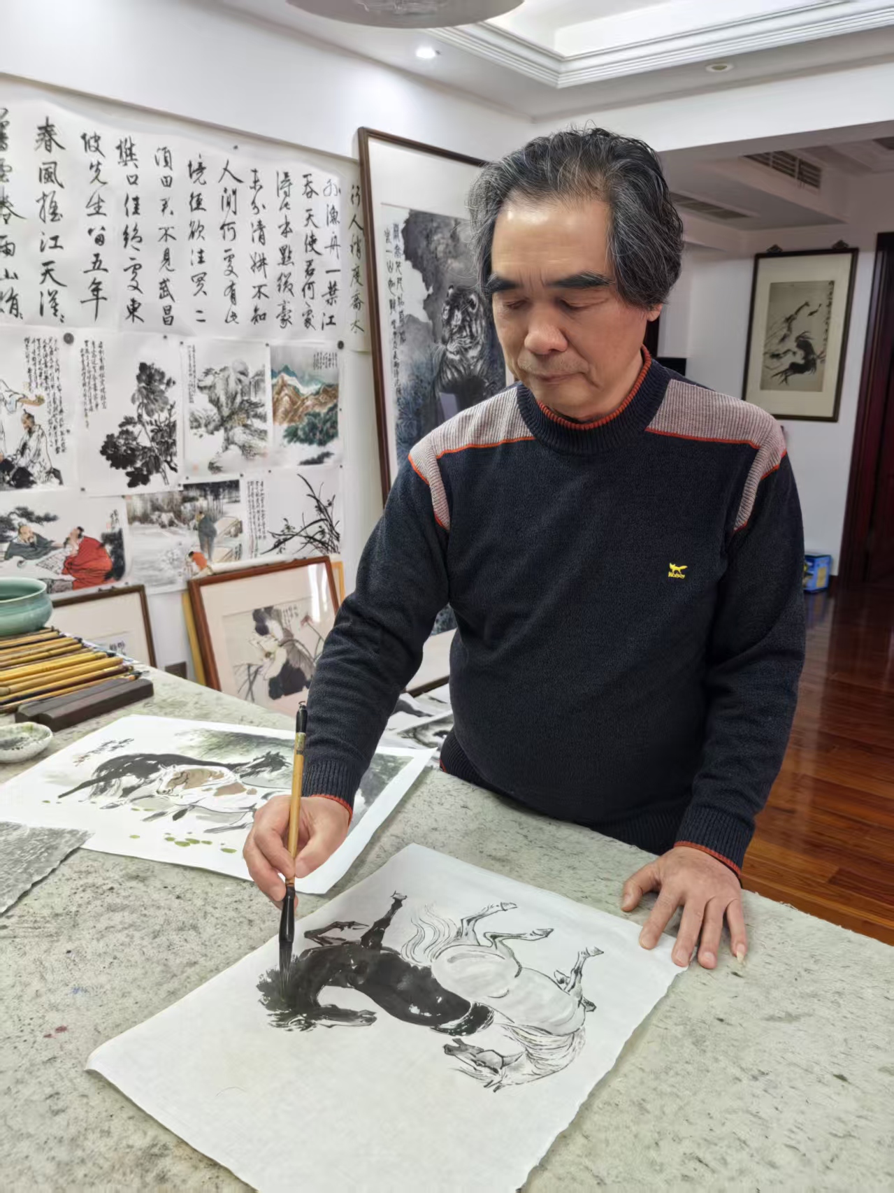 马年初一,他破例早起,挥毫绘就一幅骏马图,以“踏马迎春”的美好寓意,迎接崭新一年。