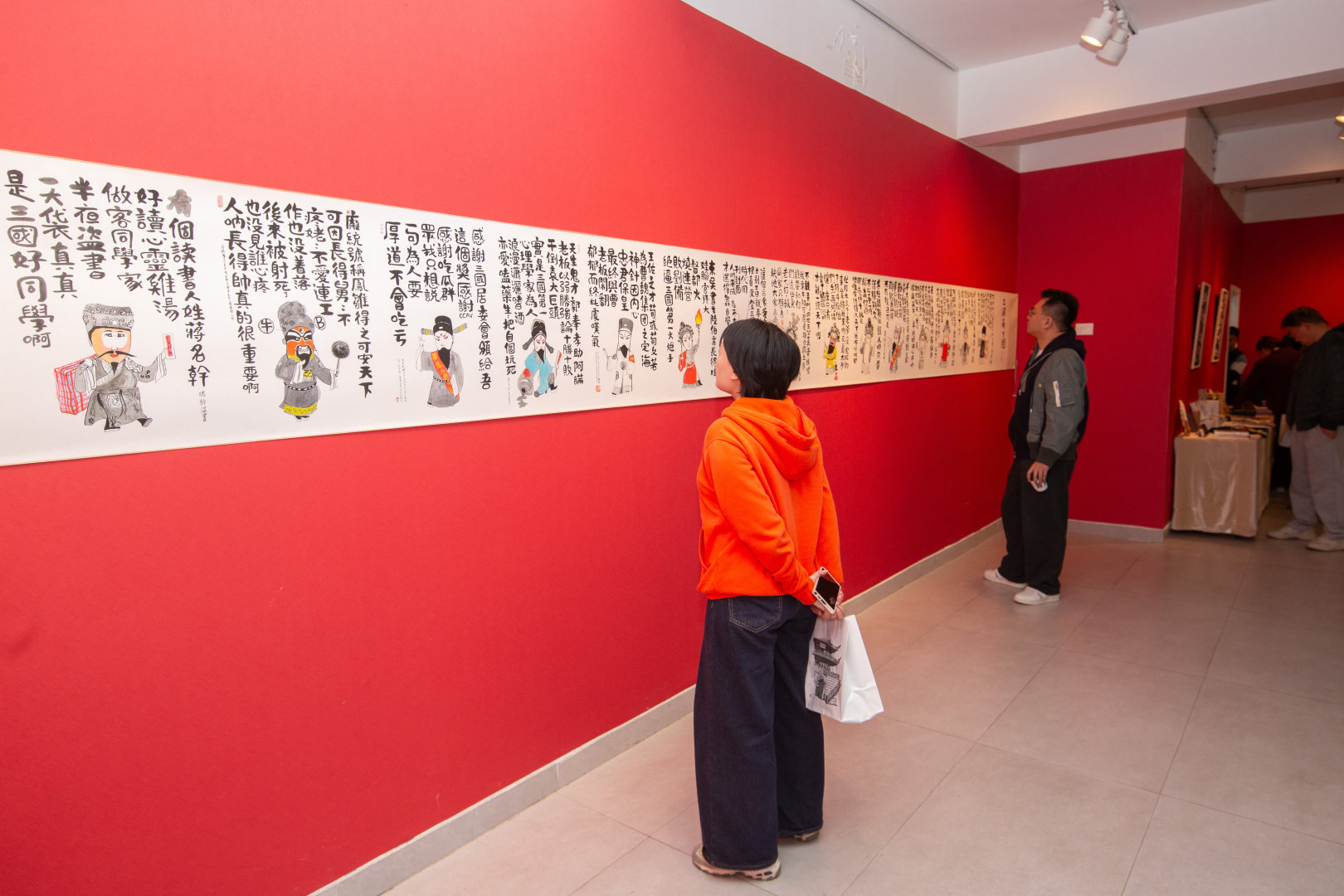 而麦浪想要做的,从来不是让艺术停留在展厅的白墙之上。墨池公园里散落的三国人物造型,将展览变成覆盖整个片区的全景式艺术空间,让路过的市民无需走进展厅便能与艺术撞个满怀;展厅内,还集中陈列了他与多家机构合作开发的三国主题、温州元素的文创产品:充电宝、折扇、冰箱贴、背包等日常物件,都成为艺术的载体。这些尝试始终贴合他对艺术的一贯理解:“艺术从来不该是高高在上、束之高阁的,它应当来源于生活,最终也要回归生活。”