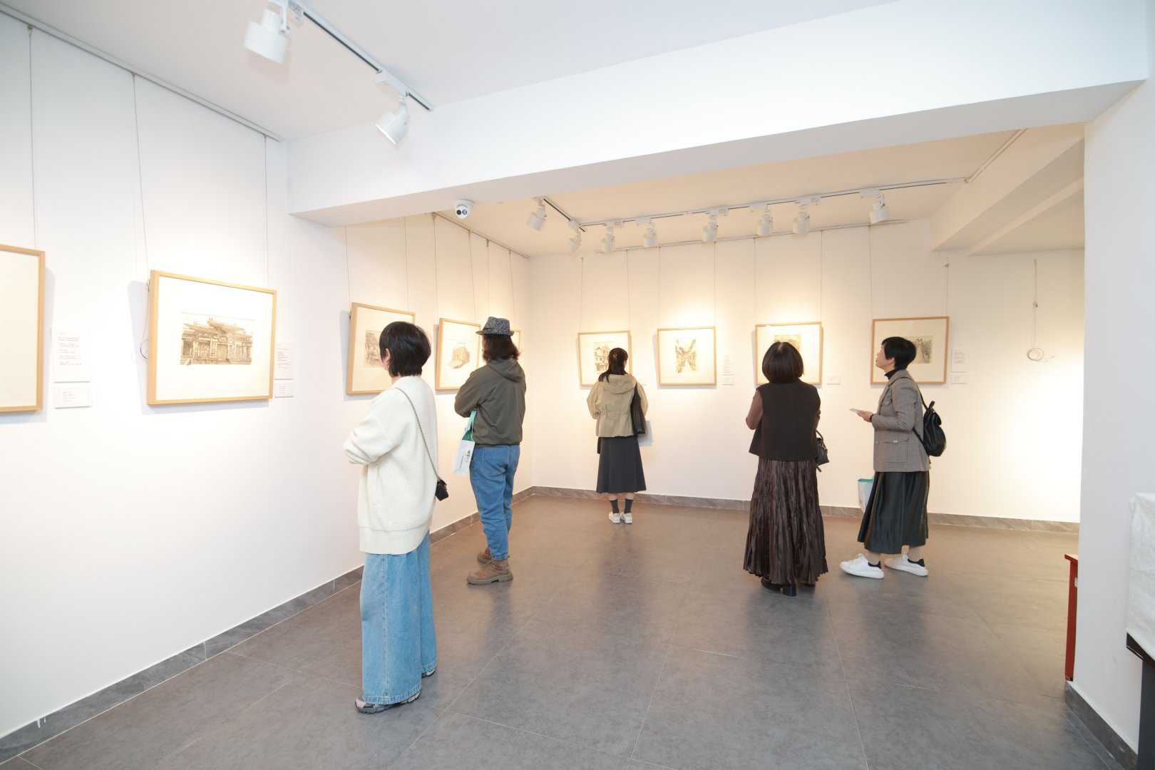 行至二楼,左右两侧空间形成强烈的视觉对话。左侧是黑白灰构筑的钢笔画世界:温州古建筑的飞檐、泰顺廊桥的木纹,皆被细密线条层层堆叠,一砖一瓦、一纹一理纤毫毕现;右侧则是脑洞大开的三国水墨数字版画:踩着单车的夏侯渊、举着手机自拍的文丑、光膀子秀肌肉的许褚……五十余位三国人物被赋予全新生命力。在麦浪看来,这两种看似截然不同的创作风格从不矛盾。“我既能用严谨细致的写实作品格物致知,也能用诙谐跳脱的方式自由叙事。”这正是展览名称的深意:“向左格物”代表钢笔画所秉持的严谨态度;而“向右风”中的“风”字,他反复斟酌许久才最终敲定,它象征着无拘无束的自由、无限延伸的可能与千变万化的表达,最契合三国水墨系列的创作内核。