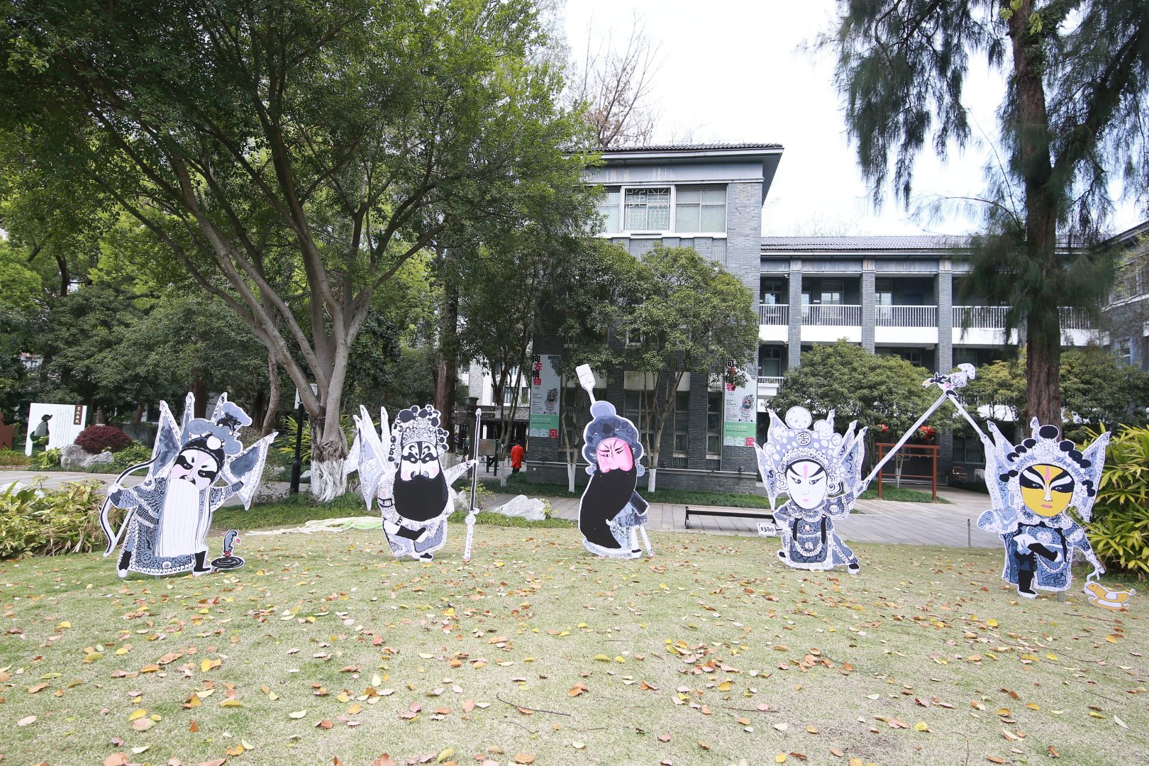 近日,温州墨池公园因一群“不走寻常路”的三国人物而热闹非凡。散落在园区内的三国主题人物,吸引众多市民驻足打卡;步入温州美术馆展厅,这场趣味之旅更是直接“拉满”:手握两把刷子的关羽、胸前别着“五一劳动奖章”的诸葛亮、把丈八蛇矛换成啤酒起子的张飞……一个个颠覆传统认知的诙谐形象,令人忍俊不禁。这些“出圈”的三国水墨形象,均出自画家麦浪之手。